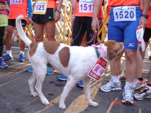 因為七點半才起跑,早上五點多才出發,不用像一般馬拉松要在三四點起床準備,而東港又是我所熟悉的地方,我看資料半馬賽有六百多個參賽,這比起綠島我跑全馬才三百多個人還要多,而路線幾都是平坦路,所以應很好跑的,這隻在里港馬出現的馬拉松狗黃檸檬也來跑了,當然我跑輸這隻狗的。