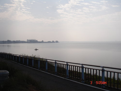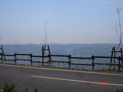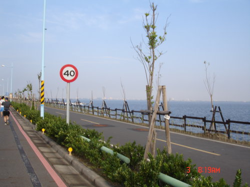 進了環大鵬灣的外環道路,開始了那種漫長的孤獨路程,太陽出來了,汗水停地流下了帽緣,我才知道我沒有把太陽眼鏡帶出來是錯的,原因是在高雄出發前氣溫算較低,看天空沒有星星,而有種雲遮蓋天空的樣子,判斷是應會像昨天一樣有些下雨的陰天吧!騎機車到東港的路上穿著長袖外套還是感覺冷,沒有想到這個時候太陽出來這麼大。