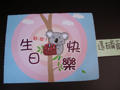 生日禮物不需要錢買,有這張賀卡就完全值得了,這個是我家小咪的傑作,她常有驚人之舉,尤其愛作弄我,我常跟小朋友說,我那放在書桌下的鐵盒子所放的都是一些我認為值得的事物,一般來說是過去的記錄,好玩的票證或是文字,小咪這一張即將成為我的收藏,她在我今年生日這一天,作了一首古詩吟唱,來歌頌我的重要日子,還在我面前唱給我聽,她可不知道我也裏頭可樂得很,真怕這天真的小咪在過幾年長大後,不再跟她老爸我玩了。