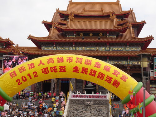 覆鼎金的保安宮,所供奉的主神是哪吒,所以這次就以祂之名來來舉辦路跑,我在想那一天也有那以耶穌之名來舉辦的,我也去參加,看看不同的財團法人所辦的活動到底有沒有不同,這種城市型的路跑,同樣地要做交通管制,不要說高雄很少辦這種在街道上的路跑,即使在台北市這麼常辦的地方都會引起用路人的抱怨,路上就遇到幾個例子,然而這種路跑,頂多管制個十幾分鐘,大隊人馬就跑過去了,不方便也是短暫的,一個友善的城市居民,應可以忍讓一下吧!