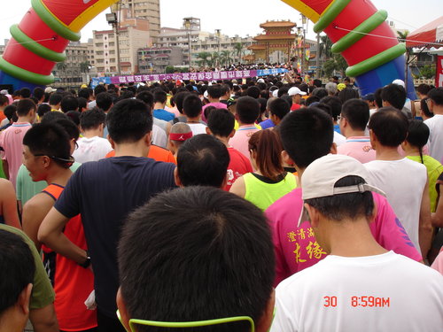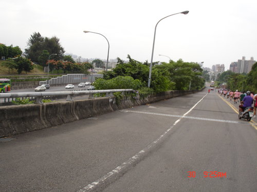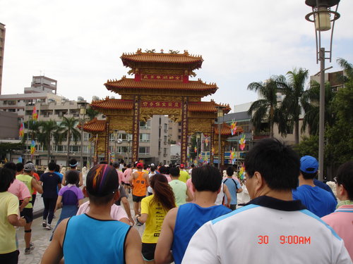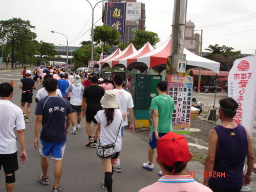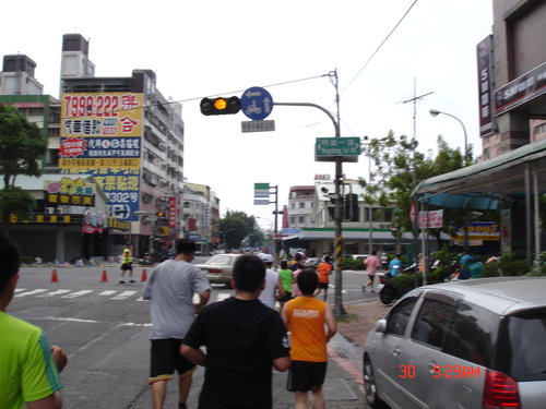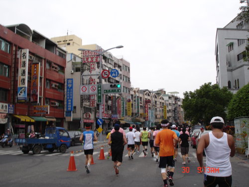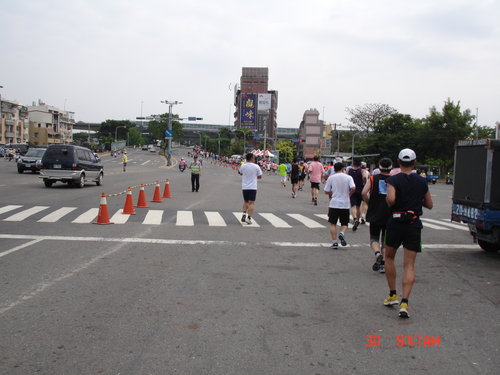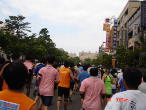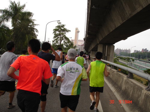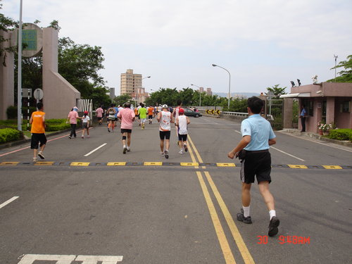 跑過了第一圈,絲毫沒有喘噓噓的感覺,只有覺得腳的筋骨有些繃緊而已,加快速度還算可以,所以就以比平常還要快的速度往前,對自己來說也算是自我訓練而已,不要以為這種十公里的路跑沒有高手來參與,從一些人的穿著及神情,看得出來很多路跑團體也來湊熱鬧的,但看得出來他們也是以長程跑馬拉松的方式來跑,也只是保持平常的速度來進行而已,所以這些人不疾不徐,用自己的方式來享受運動的樂趣。