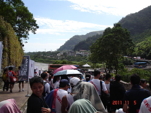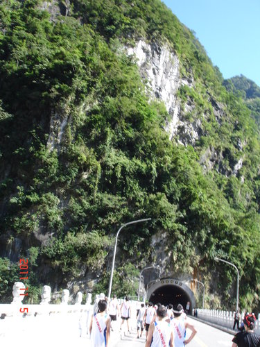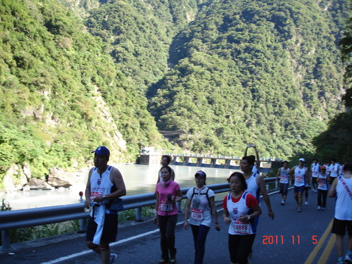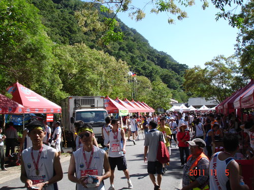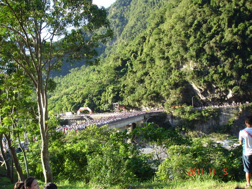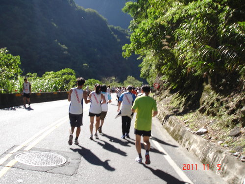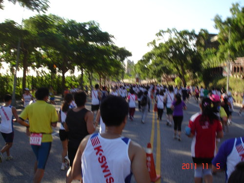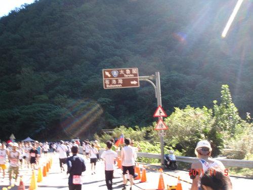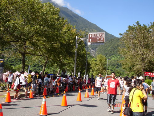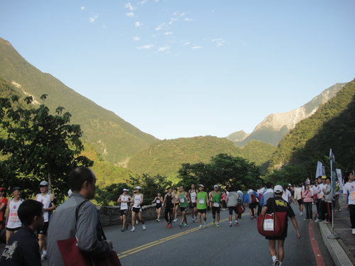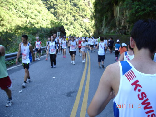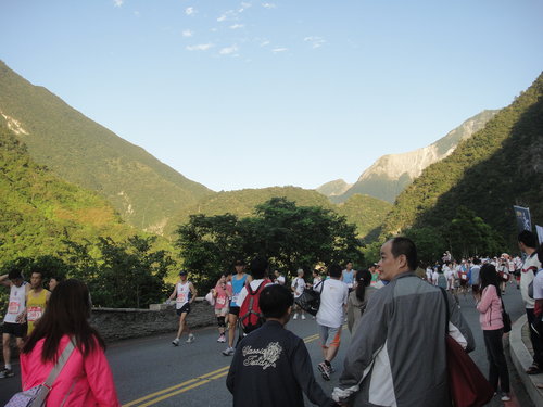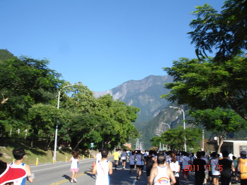 起跑後過了十分鐘,我還沒有經過起跑點,這麼多的人要一下子就疏通,那有這麼容易,反正我又不是在跑成績的,抱著休閒跑步的心態,慢點出發也不會感到急迫,先往新城方向的水泥廠跑去,因為這兒的路大,在這五六公里的下坡路至少可以在等一會回程進入峽谷區時,那兒路小才不會人擠人。