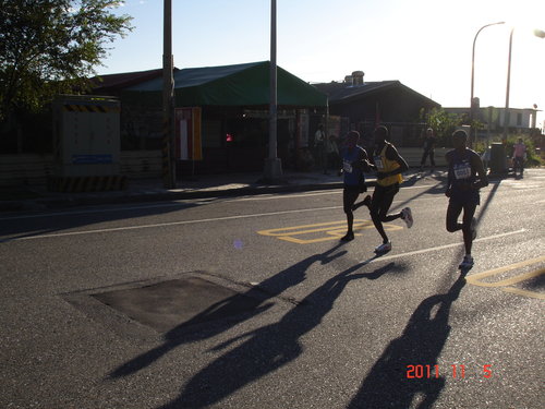 肯亞的好手從前方跑來,這些以跑馬為業的選手,真是強啊!這輩子我是不可能有這種成績的。