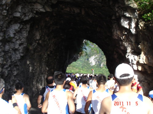 這兒開始就不是剛才跑的路線了,走長春祠另一條路,進了隧道後,又是另一條隧道,我知道離終點越來越近了。