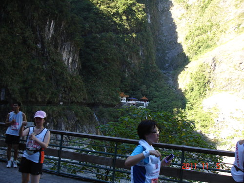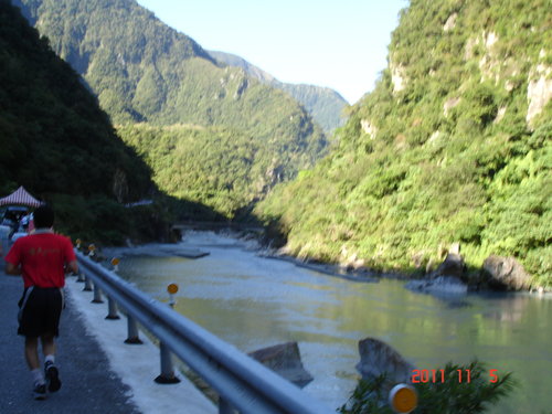 急忙走上去到太管處那兒準備並寄放東西,當然要跑步之前一定要把身上的一些沒有用的都解放乾淨,也花了些時間,看到四周美景,親眼看到才知道,這一趟雖然遙遠到了花蓮,但這景色是值得的,想到等一會兒我將徜徉在這山水之間,心中激動久久不能平息。