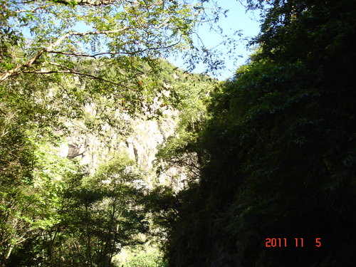 陽光逐漸地灑進了峽谷,身體的熱度與外在陽光所帶來的熱度夾攻,假如不是帶著照像機,我也要去那山澗下沖個涼。