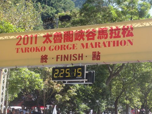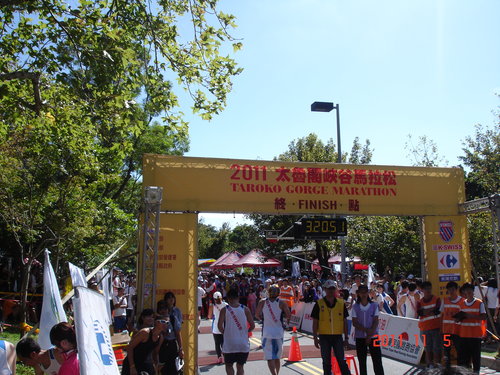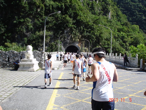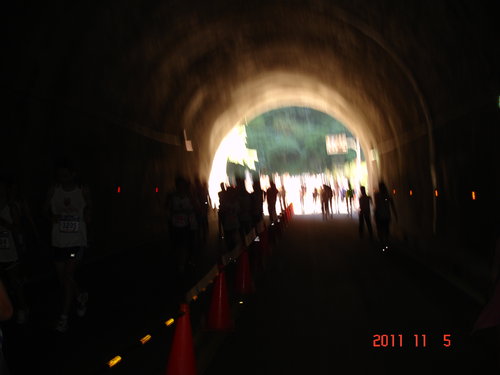 過了折返點再出隧道,有種活過來的感覺,不知道終點在那兒,疲累感不斷,而返回的路線剛才都跑過了,有一定的熟悉,踏實感就出來了,踩過了晶片感應墊,往回跑去終點吧,而且這兒開始,就不再上坡了,雖然還是要跑,但對心臟的壓力至少減輕不少。