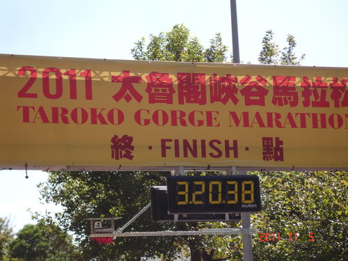 最重要的時刻到了,在大太陽之下看到了終點,腳步還能跑,只是跑得慢而已,我常說自從自己開始參與跑馬活動後,最愛看到的景象是這一幕,終點在眼前而眼淚都快飇出來了。