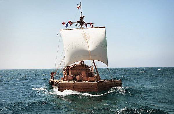 挪威探險家索爾的真人實事,用電影來呈現,把情境帶給觀眾們,讓我們也能跟著他出海去探險,海上航程近似漂流,不得不拿來跟少年Pi的奇幻漂流來比較,面臨生死一瞬間,至少沒有隨時要吃人的老虎與獨自一人的寂寞清冷,這次的探險我認為雖然危險,但不孤單有足夠的糧食,雖然保障讓心安不少,但生命旅程中,敢去做就是與眾不同,然而古老的綑筏術,禁得起海浪沖刷考驗嗎?只能不停嘗試,在狀況不明,成敗難料,變成了信心與意志的煎熬與考驗,實踐自己的夢想與追尋,沿途有水母、鯨魚和鯊魚陪伴,索爾逼近目的地時,才展讀了妻子出發前就送上船的信,那是一封祝福信,卻也是一封告別信,妻子愛他的冒險個性,但也因為這個個性,她選擇了分手,人因為這個性格而成事,也會因為這個性格而變化,刻畫出英雄在光環之後的遺憾,妻子在信上說:「你得自問為何非要踏上這趟旅行?到底是為了證明研究理論或是為證明自己能力?你始終只會專注在自己身上,諷刺的是,我當初就是愛上這樣專注於自己的你的特質啊。」索爾獨身站在夕陽前方,遙望遠方,背影透露出他的孤獨與不悔,生命之中沒有兩全之事,只有選擇最好的,當面臨選擇難題時,勇敢去抉擇吧!