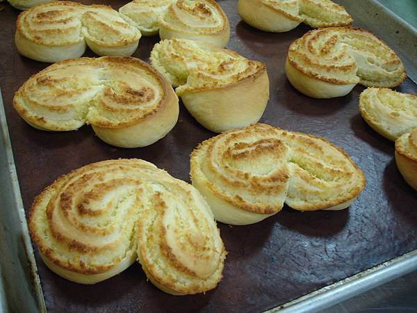 椰子麵包及泡芙,我超愛吃的,這也是記憶裏的味道,尤其是椰子麵包,對泡芙來說,我只喜歡裏頭的奶油餡而已,為何愛椰子麵包呢?因為童年時光裏,這個味道是容易取得的美味,從幼稚園開始,直到路邊早餐店,椰子味道的,不管你怎麼挑,就屬這個味道最香,有奶味,即使麵包放置一段時間,還是有香味,也能吃到椰肉的咬勁,這次的課程,引起了我超大的興趣,因為連椰子餡都教我們,不像上回的紅豆餡是買現成的,麵包體是固定的作法,能把麵體發酵成功,其他的就是在於變化,變化則各有所長,也是各家店的特色所在,還沒有完成麵包,總是在期待等一會兒麵包出爐時,香氣撲鼻,口水直流的快樂。
