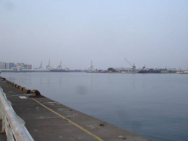 我的相機不是特別高階的,只是用來跑步時亂拍用的,記錄一下眼前所見,做個記錄而已,所以很多畫面拍得不好,倒也不計較,從前鎮高中前出發,經過前鎮河而前鎮之星的單車陸橋,走夢時代前的時代大道,再接成功路旁的臨港線單車道,經過新光碼頭,到了光榮碼頭,看到這鴨子時,天色還很暗,沒有想到德不孤必有鄰,而這個世界上跟我一樣想在這麼早來看這鴨子的人還是有的,很多都是拿著很好的相機來幫鴨子照相的,也有不少是騎單車來的,但這個時間用跑步的方式來的人好像只有我一人。