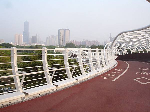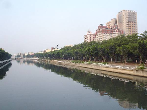 這個時候是自己跑,家人們自己吃早餐,不像剛來時天色黑夜,沒有我陪走在寧靜的城市街道裏,小朋友們會沒有安全感的,在世界光亮之後,我先跑囉,往回跑的路上,不只是單車騎士增多,連慢跑的人也增多,單車道上迎面而來的跑者大都是成雙,像我這種一個人的較少,應是晨跑的情侶吧!若是晨跑的情侶,頂多五公里而已,不會像我跑這麼遠的,其實這條路線跑了好多次了,也用GPS測過幾次,來回只有十六公里而已,自己常騎機車到哈馬星武德殿去,從家出發去一趟機車上的顯示是八公里,差不多就這個距離,若要跑二十公里,得在時代大道那兒繞兩圈,前鎮河畔跑幾圈,最後再跑前鎮高中外圈把它補足里程。