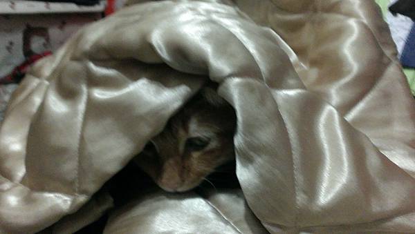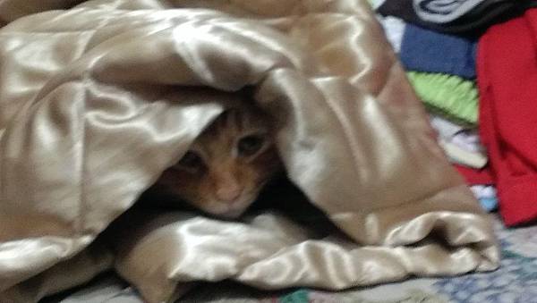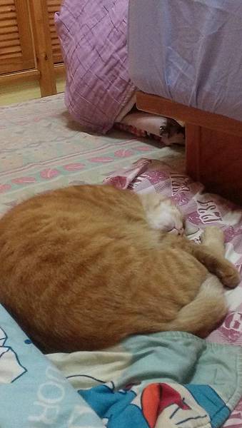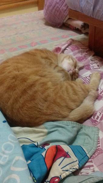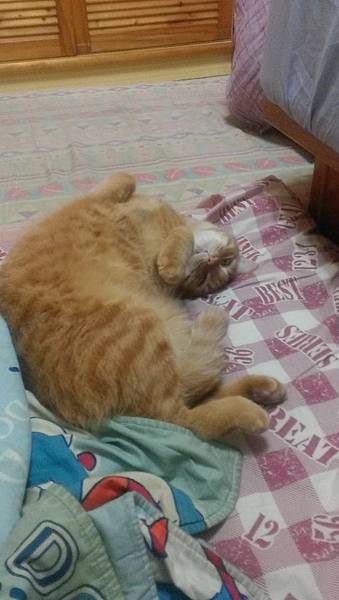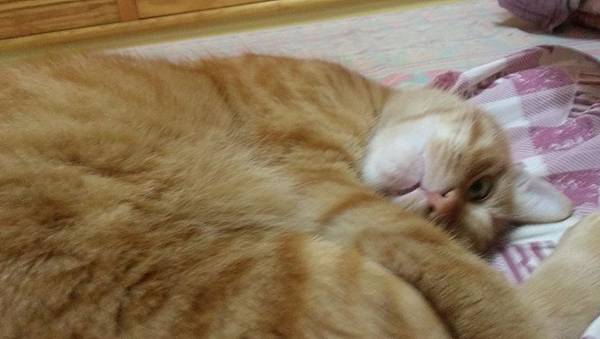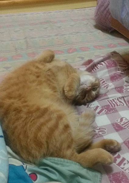 橘子這毛色,說是橘色的,也不太像,應說是金色的吧!小咪說要把橘子放在我頭上,當我的頭髮,可以遮掩我這個頂上無毛的外表,我說若把橘子放在我頭頂上,我會變成金髮外國人的,何況橘子能乖乖地趴在我頭上嗎?但不論是新年還是不管是那一天,看牠那無憂無慮的生活態度,不由得認為幸福其實很簡單,不就是與世無爭,不計較而已嗎?不論在什麼時候,把身體及心情都放輕鬆,快樂似乎就在我們身邊。