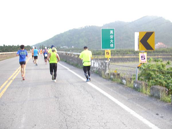 鞋子溼答答的汗水流得太多,沒有辦法很快地蒸發掉,沿著腳直接下到鞋子裏,為何知道呢?因為我的襪子很溼,腳好像踩在水裏一樣,既然汗水流了這麼多,腳痛逐漸出現,原以為至少可以撐到三十公里,再花二個小時走十二公里就可以完成,那也得在四個小時跑到三十公里,還沒有半程,我花的時間就超過了二個小時四十幾分鐘了,心想完賽變得很難,那沒有理由再撐下去,若真的撐下去,造成更嚴重的傷害,或許熱衰竭,不然就是腳傷造成要休半年幾上,那多麼得不償失,我不只放棄再跑,用走的之外,還不時地回頭看看有沒有大會的巡迴車,拜託他們載我回去,都要放棄了,不想再走了。