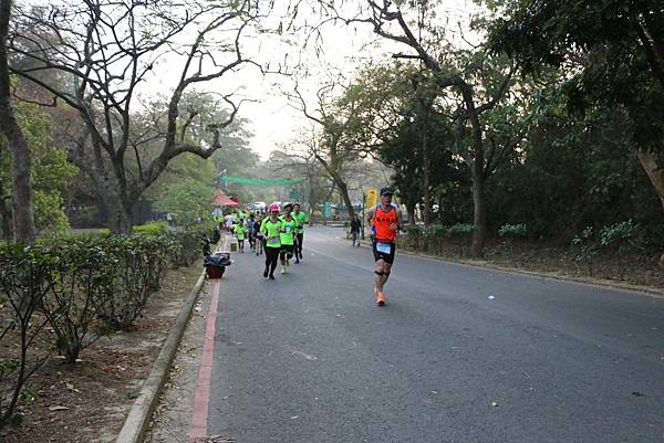 起跑後直接跑出澄清湖外,轉向圓山飯店那兒,沿著外圍道路跑,再繞回起跑點,我帶兒子跑的組別得跑二圍,算一算有四個上坡,二圈就有八個上坡,對小孩子來說也算是有些硬的,這些年來,兒子也被我慢慢訓練成一個身體還不錯男孩,我自己在他這個年紀還沒有辦法有這種體能的,我帶著他跑也是因為我想把跑步轉成保守些,只用來健身而不想在成績上有什麼進展,完全享受在運動之中就好,這場12K,也是兒子再度突破他最遠的距離,長得都比我還要高,若身體也比我好,這是我所希望的,我對他功課的要求不嚴厲,把基本的讀好即可,人生有太多考驗是書本上學不到的,堅強的毅力才是成功的基礎,願他能體會到這道理,這場活動唯一可惜的是,照像機的電源不夠,才照幾張就完全沒有電力,這也是我前一天沒有檢查的結果,不然我可是全程帶著相機跑的。