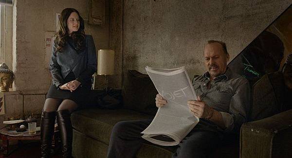 剛開始知道有這部片子時,看到片名還以為是我年輕時看過的一部片子,也叫做鳥人,還記得我是在淡水讀書時在淡江戲院看的,印象很深的是票價三十元,可知有多久了吧!還記得當年那部叫鳥人的電影,是有關於越戰創傷的,一個愛鳥的軍人,想要像鳥一樣飛翔天際,尋找心靈出口,而這部雖是一個老演員想要重新到出路,用對比現實的世界,游離在現實與虛幻,把一個出現中年事業危機,造成親情與愛情的疏離,道盡現實人生最辛酸的無奈,配樂採用大量鼓聲,讓電影節奏有催促力,讓人心跳隨著鼓聲起起伏伏,主角在百老匯的舞台上演的雖是別人的故事,卻清楚看到自己的人生,這種片子超有電代藝術特質,影像呈現、內容寓意加上文學作品運用,讓故事裏的主角,想藉由在百老匯自編自導自演一部舞台劇,來證明自己的存在價值,卻也讓我想到我要怎麼來證明自己的存在價值呢?我們是不是也渴望獲得到他人肯定,總是難以建立信心,對人生總想要奮力一搏,又怕徒勞無功,各種的心理上的掙扎,讓我們生活上的每件事都跟著轉變,有時還會把心中的幻象化成真實。
