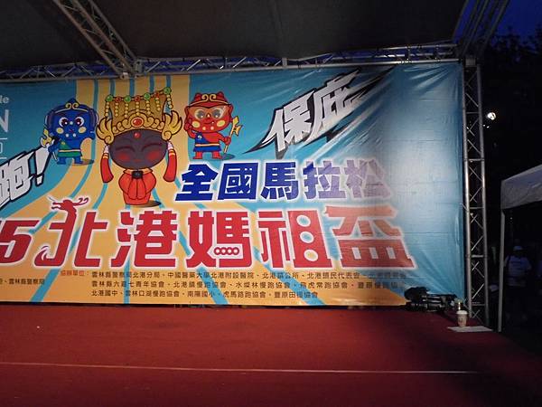 住在朝天宮的香客大樓裏,好多跑友在這兒一同住,香客大樓也提供跑友們吹冷氣,只能說朝天宮真是好客,辦馬拉松辦到這樣也不容易,整個北港的晚上,可以說朝天宮這兒都是來跑步的人,北港這地方晚上沒有什麼地方可以逛的,鄉下地方,人們都早早休息,廟這邊還有些店家有在做生意,心想隔天跑完後應沒有力量再走到朝天宮這兒拜拜,所以就先在廟這兒拜拜,希望媽祖保佑平安,其實晚上這附近還是有幾家店料理好吃,我超愛的楊桃冰,還有燒烤,只是為了跑馬,不敢配啤酒喝,有些不盡興,香客大樓裏,可以容納很多人,而且香客大樓不只一棟,好多棟的,我們安排這一棟還算不錯,有些跑友是來玩的,不少人喝酒喝到臉紅,應不是跑全馬的吧,我是不會這麼做的,一堆人住在一起,當兵二年都很習慣,只是退伍好久,都快忘了這種感覺,不像在山上,我在這種氣氛之下,很自在地睡,凌晨三點還不到就有人起床,原本心想離會場又不是很遠,起跑時間是五點半,再窩在床上一些時間,四點不到起身,才知門外的跑友人一大堆都起身準備,背起大包包,先到朝天宮去,捐獻了一些香火錢,我母親活著時,告訴我不能毫無回報地接受別人的幫助,人必須要對別人的幫助感恩,這點我有聽進耳朵的,到會場去,那兒還是黑暗,因為大會還沒有準備好,但跑友們早已聚集不少了,把碼頭阿明哥送我的朝天宮香包裝在夾鍊袋放在腰包,那腰包有女兒畫的免落馬祝福,再來就是等著開跑,隨著天色微亮,天邊有雲聚集,這場最怕溫度,不怕下雨,我還真的希望全程下些雨的。