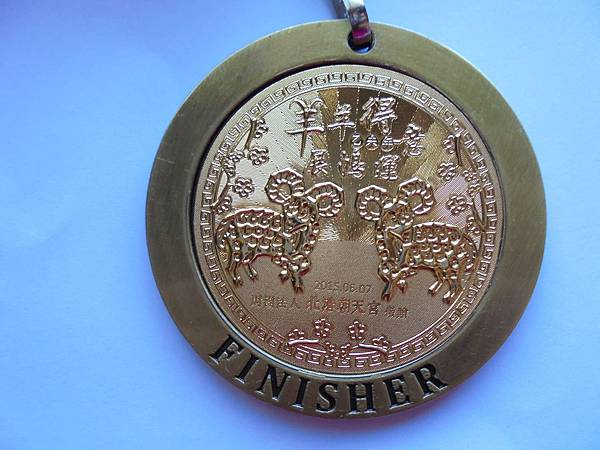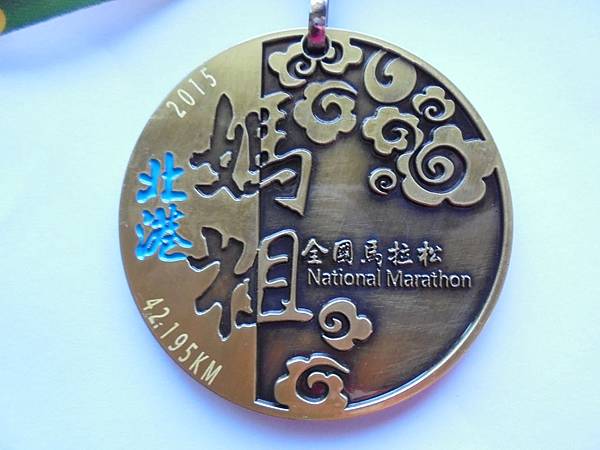 現在半馬距離對我沒有任何壓力,只是汗水很快地就流到全身溼,也許溼度過高,汗水不能揮發,延著腳直流到襪子裏,沒有多久連鞋子都溼,十幾公里就覺得鞋子溼,不舒服但還能接受,半馬後太陽開始露面,而身體也開始被熱度煎熬,體力如同掉下斷崖似的,直直落下,體能消失的這麼快,真難受啊!近返點後還能跑,但越跑越慢,這路線沒有遮蔭的樹木,人在太陽下跑著,自覺得苦,但得持續下去,跑跑走走的情況下,到了北港溪河堤上,這兒空曠且視野好,雖還要五六公里,但腳底因為汗水而溼皺之下,感覺起來是起了大水泡,直到下河堤,自己知道水泡讓我跑不起來了,因為每跑一步都疼痛不已,心想只要水泡不破,就不會磨擦出血,出血就連走都走不動,離終點都這麼近了,在這個地方落馬很可惜的,用走的吧!連走都痛,每一步都痛徹心腓,進了北港鎮裏,為了面子也要跑起來,身體的痛加上曬成體能都快完結,擠出了自己一點點的力量,忍了腳底的極大痛苦,到了朝天宮前,停下來拜拜媽祖婆婆,希望媽祖讓我剩下不到一公里的路,能平安完成,也感謝祂給我信心與力量,完成了這一場全馬,再祈求全家能平安,我知道家人在終點處等我,我也平安到達終點,感覺活著真好,太感恩這個世界的所有一切,一停下來後,腳痛得更難受,有剛才的數十倍,走到盥洗處都難,老婆大人還要走到廟前大街去買日興堂大餅及麻油,我走得比起年邁的老人還要慢,女兒陪著我,她說要去找輪椅來給我坐,太瞧不起我了,走得慢也不想坐輪椅,但女兒牽著我手走,至少覺得她是窩心的,接下來是全馬放暑假了,再來的安平馬及金虎爺都是十公里,熱都不是問題,陪兒子跑而已,下一場全馬是九月初的潮州馬,我要回我故鄉去跑全馬,好期待。