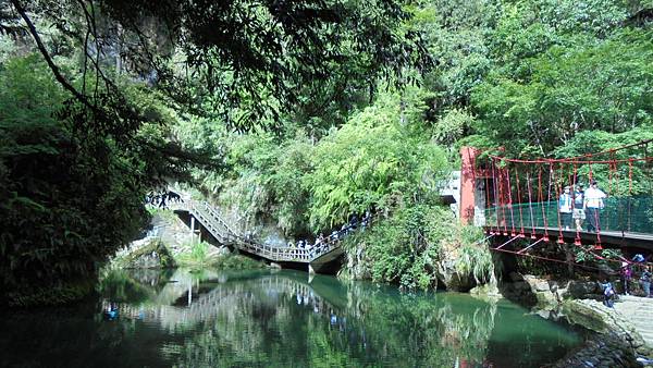 用走的,先走大路到松瀧瀑布,再變到天地眼,走森林步道回到飯店,除了青龍瀑布那兒外,其實大部分杉林溪都走遍,這是一場健行活動,好像辦路跑一樣的活動,也不是越野性的山徑路跑,純健走的活動,剛開始貼出公告時,我馬上就幫全家人都報了名,全程要走十公里,早餐才吃完沒有多久,七點半出發,一大堆人在山裏頭走著,也不趕時間,沒有跑步這種苦痛感,可見健走也是種很好的運動。