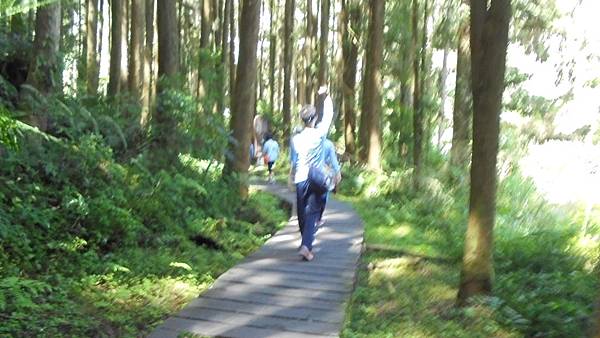 步道再遠都會走完的,比起玉山步道還好走,全線沒有直射的陽光,林子裏走路,除了人多了些外,其他都沒有話說,辦活動就是這樣子,能吸引愛運動的人來,現在社會上有股追求運動的風氣,各個層次的運動都有,百貨公司裏,賣休閒服飾及物品的店家比起過去還要多,我的國旅卡消費一大半都是花在運動用品上面的。
