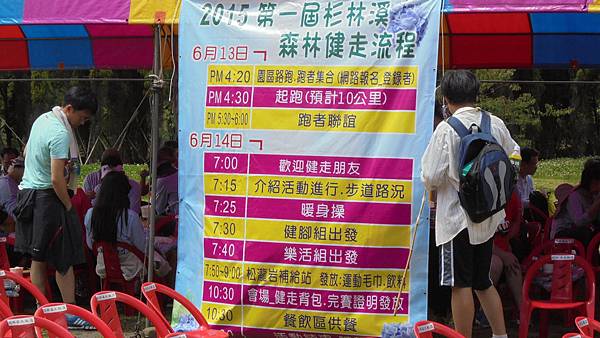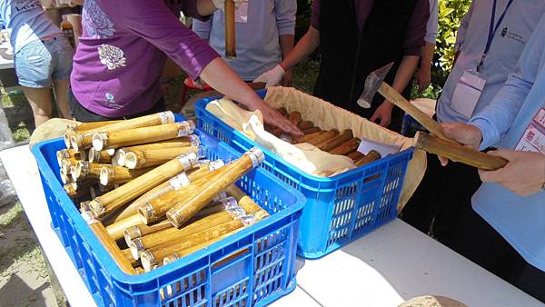 回到終點,在這兒吃了大會準備的竹筒飯,還提供其他東西,我只喝梅汁而已,這兩天肚子一直漲漲的,吃太多了,平常吃少,可能胃變小了,回到房間去洗澡,休息一下就要下山去。