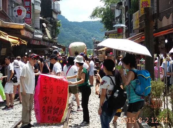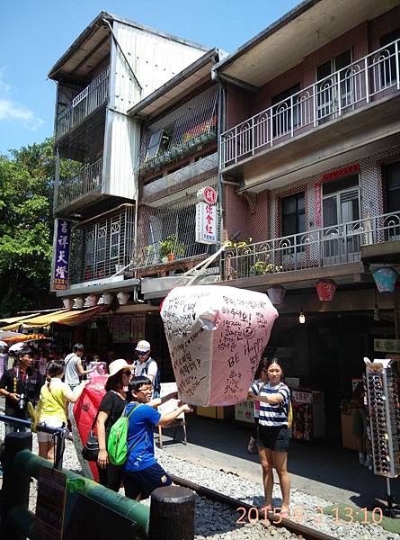 十分這地方,是基隆這兒的地名之一,有堵,有分,十分是最高等級了啦,而我們把平溪線每一停留點都走過了,也去過十分寮瀑布,就是沒有到十分車站這處停留,到這兒來是我的想法,把這條路的地圖補齊,若沒有天燈這玩意,我想平溪線這地方,吸引不了遊客的,幸好還有一個點是因為這條路是過去淡蘭古道的路線,能發思古之情,我很喜歡老地方的,遊客好多啊!尤是外國遊客,都在放天燈,白天的天燈跟夜晚天燈,當然是夜晚較美,天燈是噱頭,想要平安的心倒是真的,透過燒金紙也是種方法,都想把我們的心願告訴上天,人們總會找些媒介來傳達心願,所以人類的心是脆弱,有信仰的人才能有寄託,天燈是心願的表達,十分是最高等級,幸福滿滿,遊客們總是在這種快樂心情之下,找些想要的慰藉,也把這單純的小地方擠得滿滿都是人。