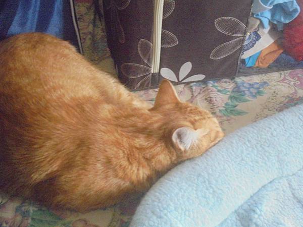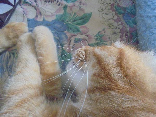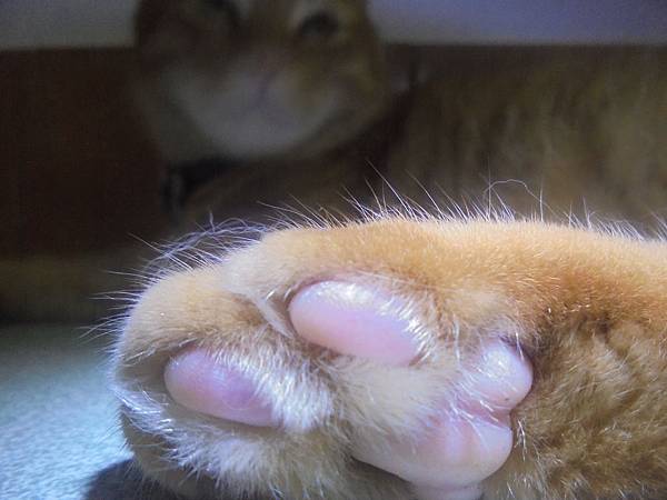 但這小伙子,睡覺時,看著牠的貓掌,軟軟的,真可愛,貓的特性,還有軟綿綿的身段,真好玩。