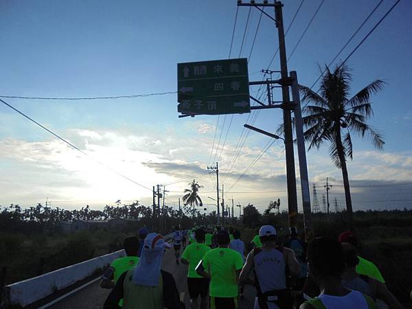 這條路會經過母親去世前住過二年的安養院,看到這家安養院,心中好酸啊!往事種種,突然浮現心頭,太陽在北大武山頭快露出來了,可想這一天會是個炎熱的天氣形態,我不敢跑太快,為了是保留些能耐,不能在還沒有過一半距離就爆了,一旦爆了就是強烈的撞牆期出現,好苦啊!這點我知道,既然預料天氣會熱,我又不是競速型的跑者,享受跑步最重要。
