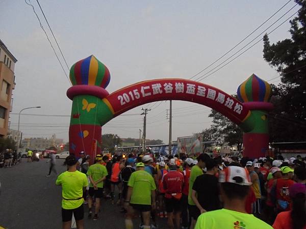 仁武這地方,對我來說還不算是遠,若開車轉10號快速路,下第一個交流道就是水管路附近了,會場在仁武高中,也在那附近,但我還是騎機車去,昨天晚上睡覺後,就一直覺得脖子卡卡的,心裏想的不是好事,以為是受了風寒,這幾個月來,每次去游泳後,下午就開始流鼻水,過去不會這樣子的,可能身體的狀況也在改變吧!心想著這麼長的距離,若是在途中有什麼狀況就棄賽吧!沒有想到的是,人生很多事你根本想像不到的,這場我很怕出狀況而棄馬,卻是近來最自在舒暢的一次,上次跑柴山還跑到不舒服,最後進海軍軍區時,連走都走得難受,而這場跑義大世界那兒的觀音山區,卻能自在完成,可見之前的顧慮是多餘的,但還是要小心才是。