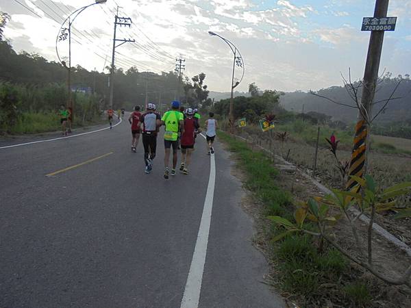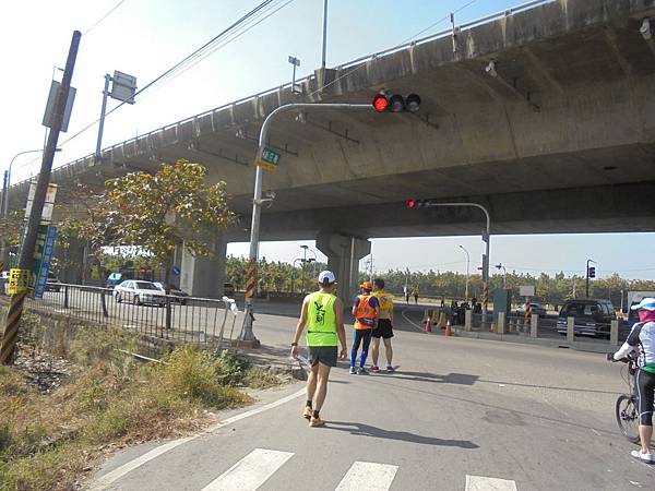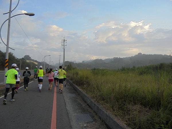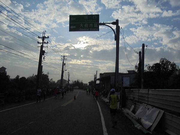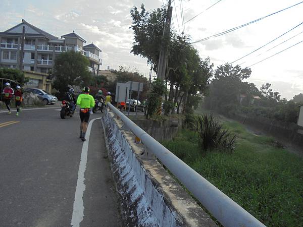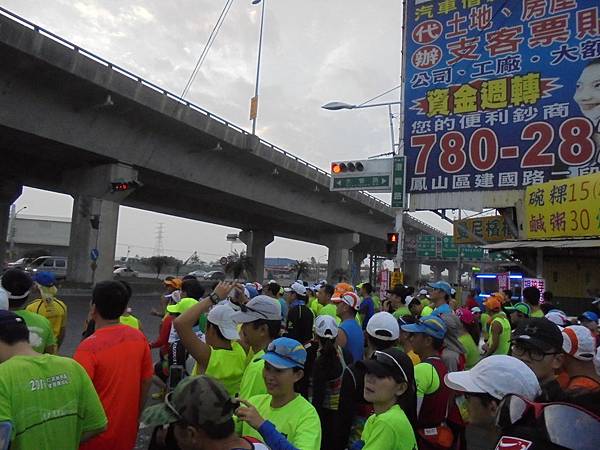 這所高中以培育長跑人才出名,在跑場一常看到這學校的學生由老師帶來參與比賽,人生路不見得一定要讀書,體育也是條路,只是體育這條路比讀書更不易成功,我常說這世上博士多還是奧運冠軍多呢?像林書豪有這麼好的學歷,也賺不到做職業籃球員的些微,我鼓勵小孩子讀書,但不喜歡小孩子讀書讀到腦子制式化,變得自視甚高,忘了這社會是各行各業所組成的,每個人都有其用處,這場的路線不可能在仁武區的熱鬧地方跑,一開跑就往觀音山區的方向去,繞出小徑走到主要道路,水管路,這條路名很特別,所以我記得清楚,直通到楠梓,很大條的路,可是要經過10號快速道路這路口,因為車輛很多,先等紅燈,反正大部分的人不是菁英跑者,不會在意等待些時間的,畢竟安全還是第一。
