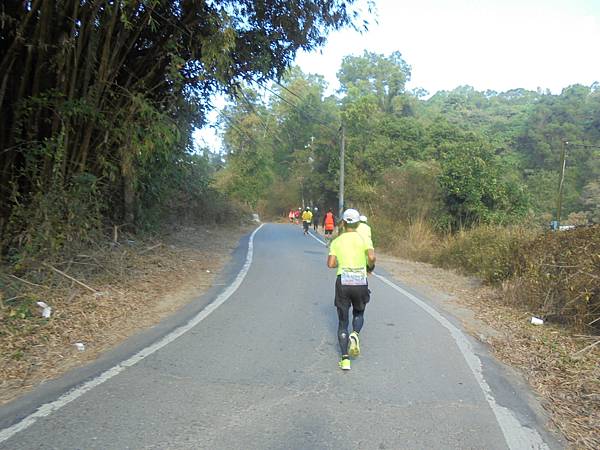再彎進小路,我有看過路線地圖,也把地圖記在心裏,這條小路一路往下,但到這兒也快二十八公里,我原先的計畫是跑到三十公里,再快走加上慢跑,不要讓自己腳過度操勞,結果證明我的做法是對的。