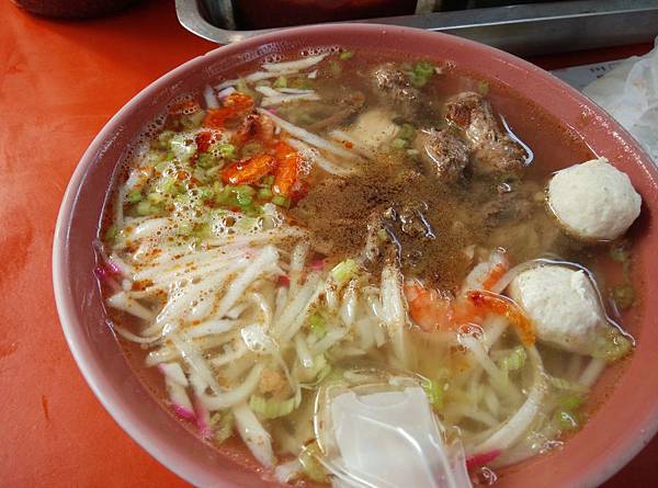 這家在東港延平路上,要往鎮海宮的路上走,在一個三角路口的廟前,碼頭朋友說,每次到這兒來吃,就讓他心情都興奮起來,聽他這麼一說,我非得去嘗嘗不可,沒錯,的確好吃,但對我這個賣魚家小孩出身的來說,還是不夠的,因為我記憶裏的美味飯湯,無人能取代的,因為只有我家才能煮出來,好懷念自己父母親,對人的懷念,還包括著味道。