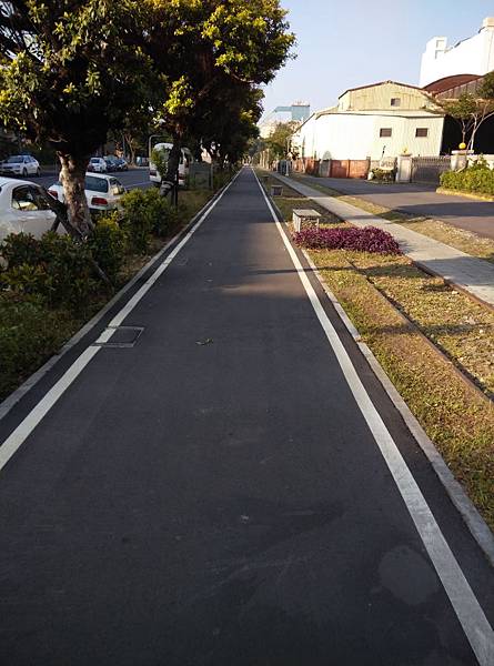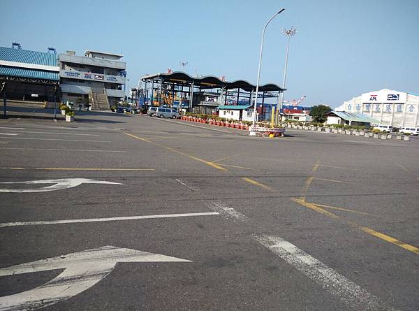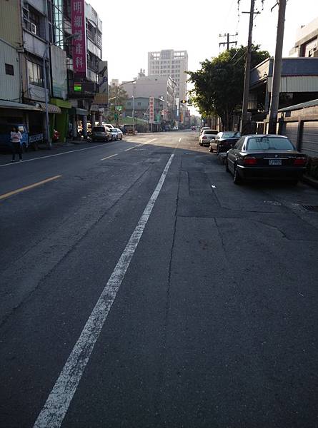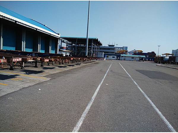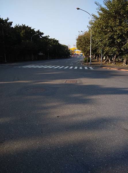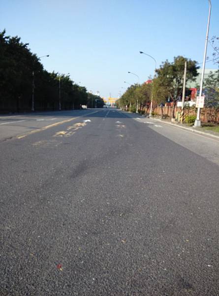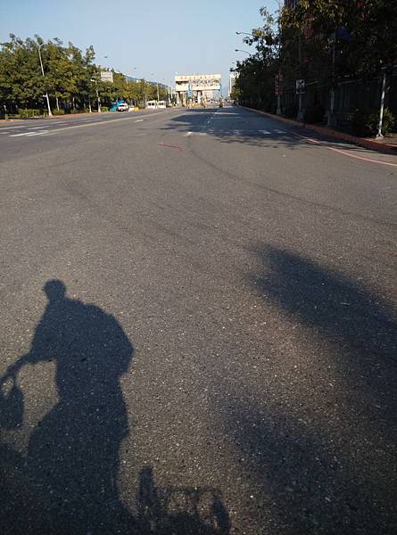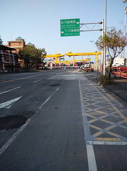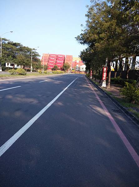 一大清早的,整個馬路上車輛稀少,原想騎機車出門的自己,心想著這麼悠閒的街景,一年才有這麼一次而已,騎著單車出門,去感受一下難得的城市氣息,尤其是往碼頭這兒,平日可是大貨櫃車及人員車輛來來回回的地方,空氣污濁而危險,我常騎單車都得靠馬路邊緣騎才會覺得有安全感。