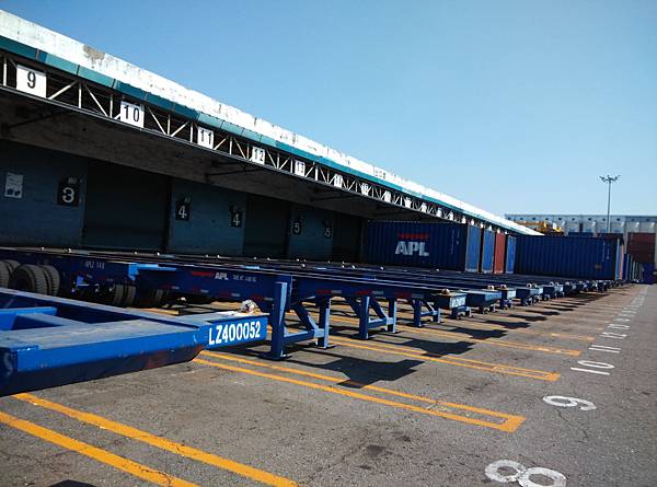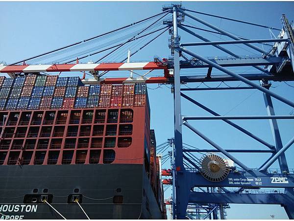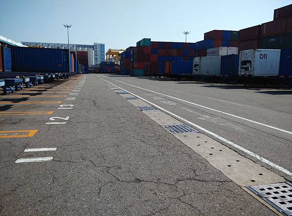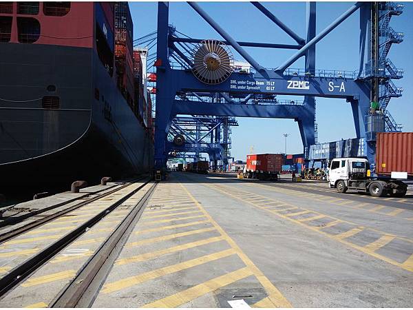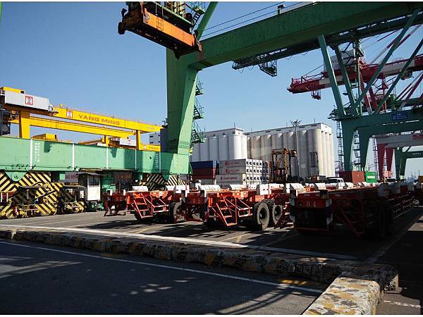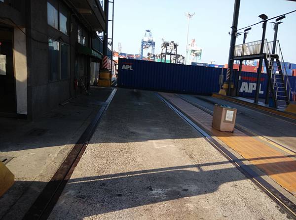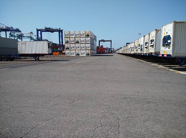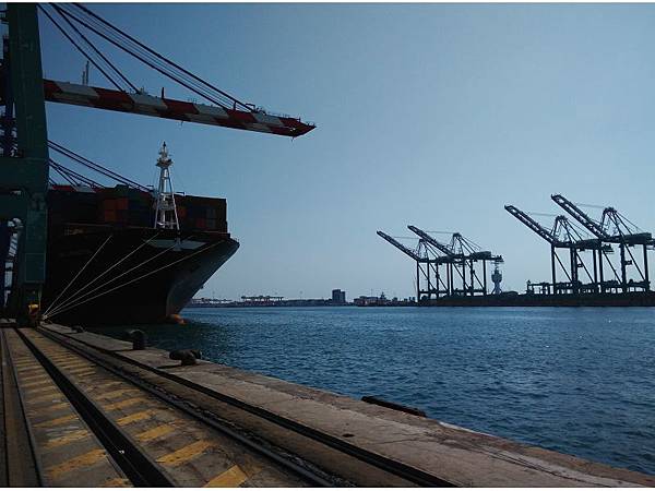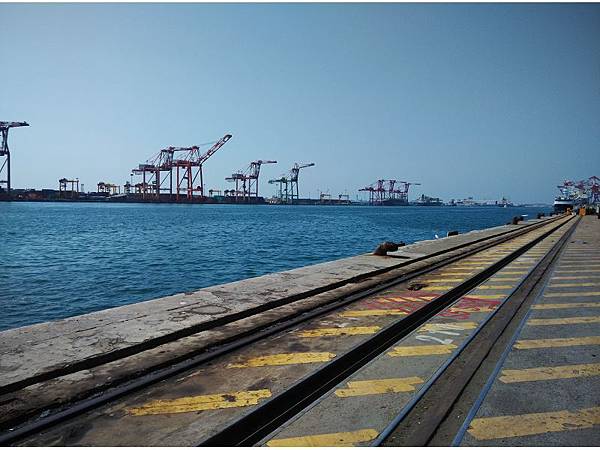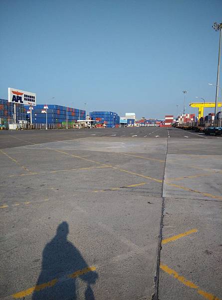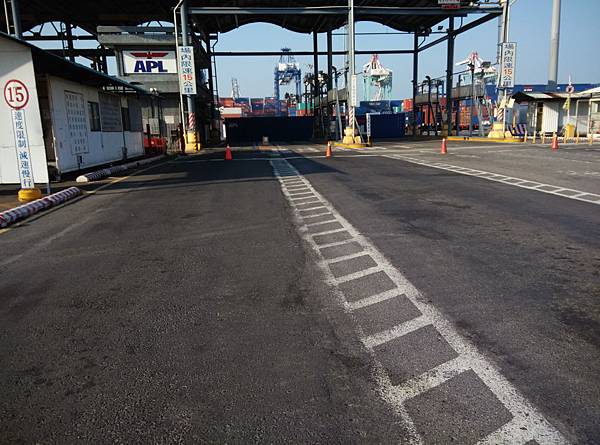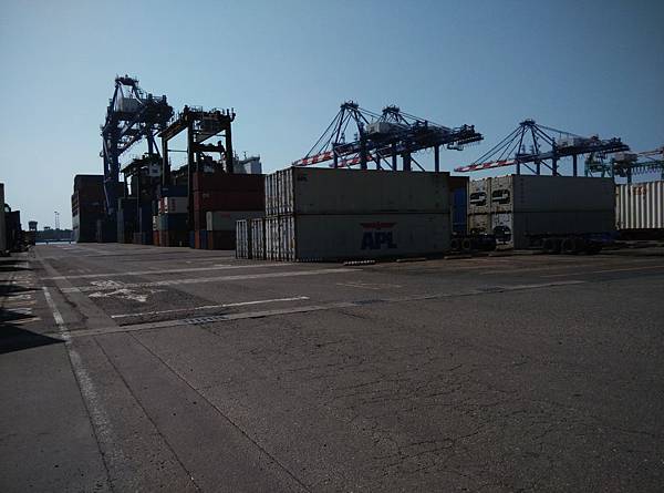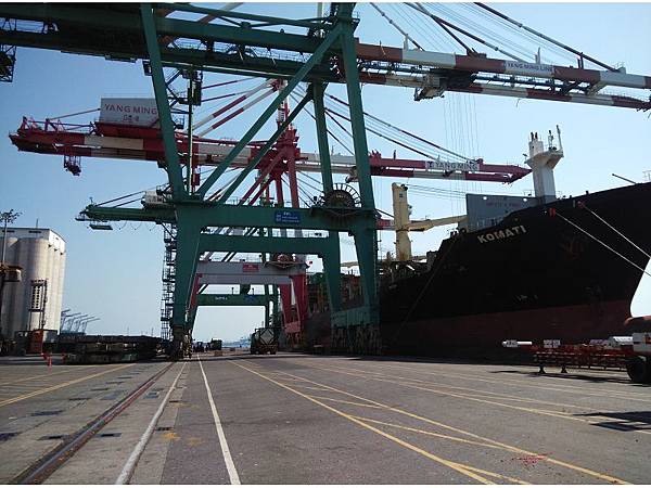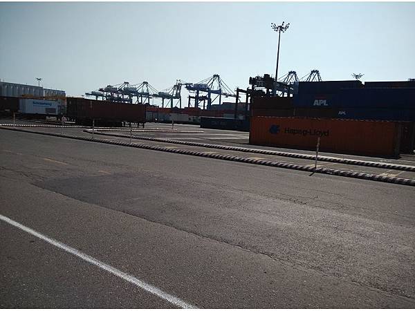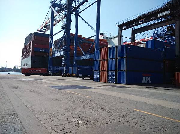 貨櫃碼頭的船邊作業,我也很少來的,裝卸貨櫃工作危險,除非必要,或是要上船,我也不會刻意到海邊來的,今天貨櫃場內沒有什麼車輛,我才騎單車到港邊看看。