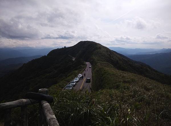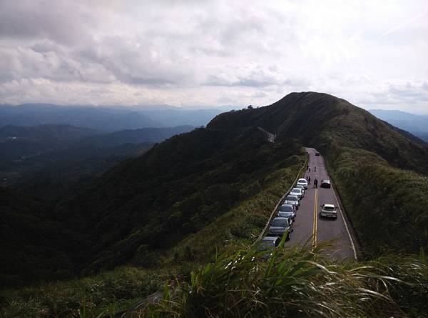 來的時候,這兒早有不少人在這兒,風蠻大的,那條孤獨的道路可惜了被停了不少汽車在那兒,有些殺風景,雖然少人來,路旁停了數台重型機車,現在假日的車道上,尤其是山路,常有重機來這兒壓車,很奇怪的,我印象中重機的車型設計應是高級的,怎麼這些機車的排氣管音都這麼大呢?還是這些玩車的人都去改車改成有聲音的呢?我在香港時及在台北街頭,聽到警察的重機,其實沒有太多噪音的,山路原本就較小,轉彎時有死角,壓車的重機讓我們在這兒覺得很危機,而且噪音讓整個寧靜的空氣變得緊張。