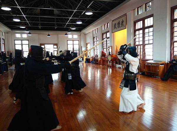 來練習的人很多,上位者大都是日本高段者,也有歐美人士,大陸來的也有,這些人來這兒練習,高雄的武德殿只是他們來訪的其中一站而已,愛好運動的人們,歡迎他們最好的方式就是以武會友,聽說這些國際人士幾天來兵分幾路,從北到南,一路跟各縣市有劍道練習場的地方切磋武藝,利用參訪各道館的機會,順便體驗各地的風土人情,如同我到處跑馬一樣,運動兼旅遊,一舉兩得,晚上還有為這些劍道愛好者辦桌,讓他們體會一下台灣人的愛客。