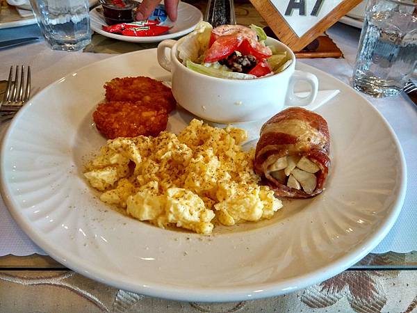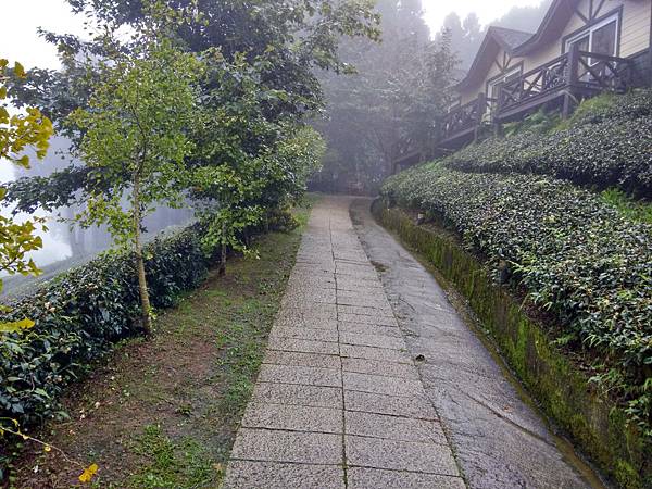 這地方看起來有茶園,園區步道規劃得還算不錯,平日這兒若不以住宿考慮,也可以來這兒觀賞風景,一日來回對住在高雄的我們不適合,若住在新竹的人就可以用這種方式來走走,過去我住在基隆或是淡水時,我常做一日來回的爬山遊,摸黑上山再天黑前下山,走過不少地方,有些地方都忘了自己到底有沒有去過,遇到新聞有在介紹時,我才會回想起我去過,雨越下越大,去吃晚餐時撐傘也會淋溼,換穿短褲穿夾腳拖鞋去,反正都到了郊區了,不必要穿得多麼正式,全家人一同吃飯有個好處是叫不同的餐點,每個人的盤子裏都夾些來吃,那就可以嘗到多種味道,家人才交換吃,別人就不好意思了,所以跟家人一同旅遊的好處不少,全家人睡在一個房間感覺習慣,若有個外人在裏頭,總會有點兒不習慣,雨下到你想到戶外走走都難了,所以晚上就把這晚餐當成一場豐盛的享受心情去面對,用多點時間在餐桌上,再來就回房間去窩著了,我這個人好睡卻睡不久,早就跟家人說我若睡不著就會去躲在浴室裏用平板看影片,真的在天亮前就在浴室花了些時間,無線網路很順暢,所以我說未來的時代裏,通訊無死角,通訊費用也會越便宜,用通訊可以完成的事情越來越多,我們的生活形態將會轉變成什麼樣子呢?