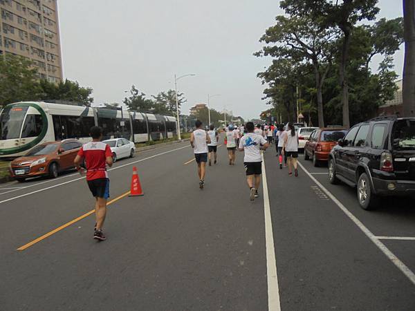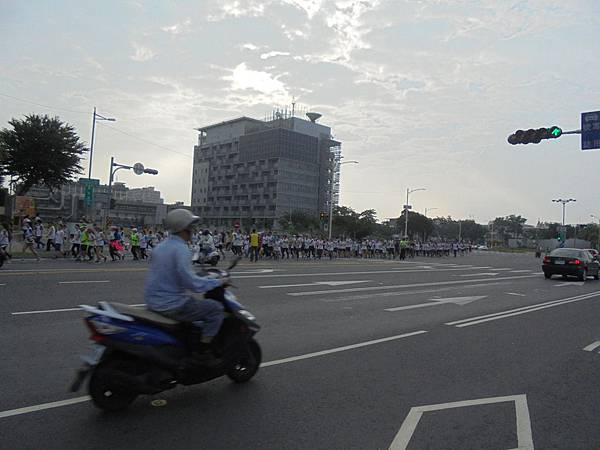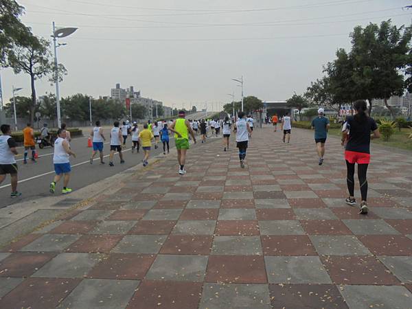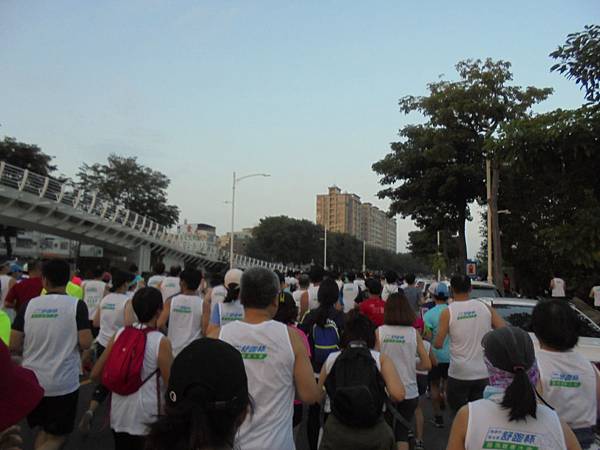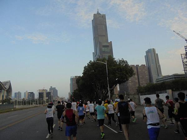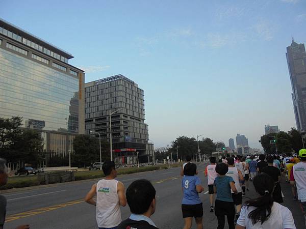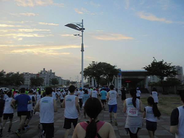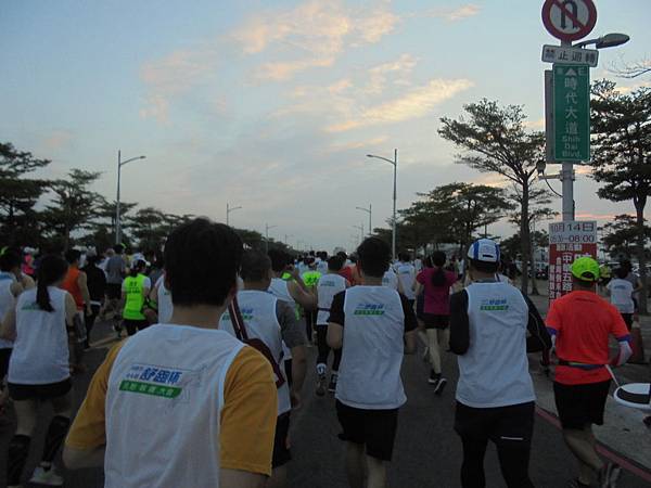 現在的我大都以全馬賽為主,連半馬都少跑了,其實在夢時代這兒的半馬賽,我應要參加才是,畢竟離家麼近,用走的去會場都行,平常自己練跑也都會往這兒跑過來,對我來說不會是個陌生路線,參與活動會讓自己的運動過程,不會有太孤獨感,自己一個人在平常練跑長距離時,常會覺孤單而沮喪,沒有旁人的競爭,沒有旁人相陪伴,身體一有不適感,都會放大數倍,跟著人群跑,較容易忘了自己,把心思放在周遭環境上頭,我打算在夢時代這兒辦的十公里以上的,應都來跑跑才是,不要總以全馬為主,我這種沒有用很多時間在長距離練習的人,全馬能跑得自在就算不錯了,不敢在速度上有所期待,但在我這種休閒性質的全馬跑者也不容易了,很久沒有出現在半馬距離以下的場子了,原來人這麼多,習慣全馬場跟吃苦的跑者在一起的我,還真的有些不習慣,常常幾百個人就上場,今天這場應有至少五千以上吧,大會說大一萬人。