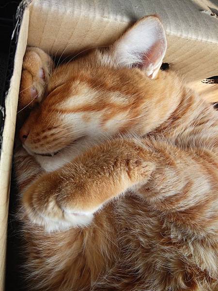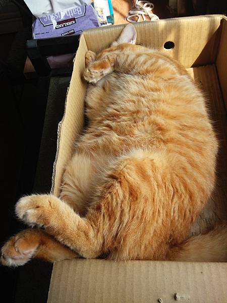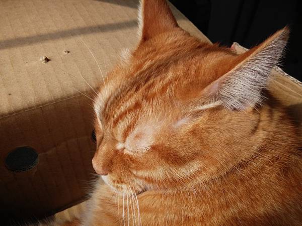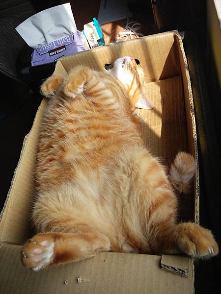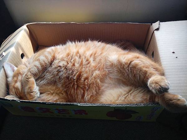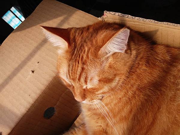 冬天到了,橘子開始他的避寒貓生,還好南台灣的冬天還是有陽光的,所以窗戶旁的紙箱是他的最愛,只要太陽一出來,他自動跳上去享受陽光的溫暖,每次他曬太陽後,都會覺得他的毛色變深了,難道是陽光也可以把他給曬橘了嗎?人類是曬黑的意思,說到這紙箱,每次老婆大人都要幫他買一個貓窩,我都說不要買,根據所有資訊顯示,貓喜歡紙箱勝過其他物品,加上紙箱便宜又好用,難怪連寵物店都在賣紙箱做的貓窩了,生意人腦筋動得真快。