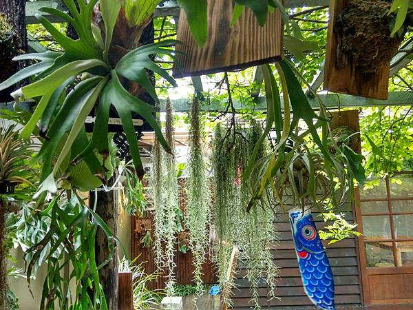 還有狗狗陪伴喔,養寵物的環境這種空間最好了,一來等待的客人可以跟狗狗親近,再來狗狗擁有這麼大的空間不必在街上到處跑動,可免被車子撞到的風險,對他們來說是幸福的,這兒還有一個特色就是鹿角蕨很多,可見主人也是個綠手指,我若有這種空間,我也想要把自己的環境安排得綠十足,這就是我若中了樂透彩後,唯一想要做的,不會想要多好的享受,而是想要一個像這樣的居家空間。