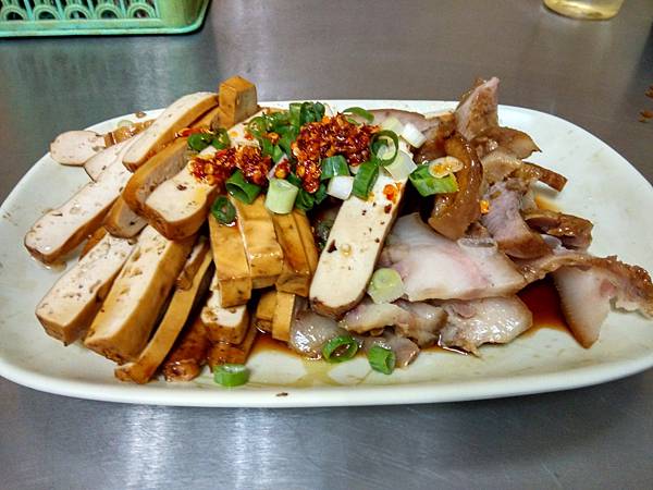 小菜這切盤,我很喜歡豬頭皮的,大都是加些豆乾而已,別人都有有很多選擇,我只要這兩種而已,一個人吃嘛,國小時,住在家鄉郊區那兒晚上吃麵常叫豬頭皮吃上癮,吃麵若有叫小菜來配,只有這兩樣而已,還好我吃東西簡單,沒有一定要大餐不可,雖然夜市可選擇的很多,我好像只吃麵而已,買回家的,就只是便當,還真的是一個不會享受美食的人。