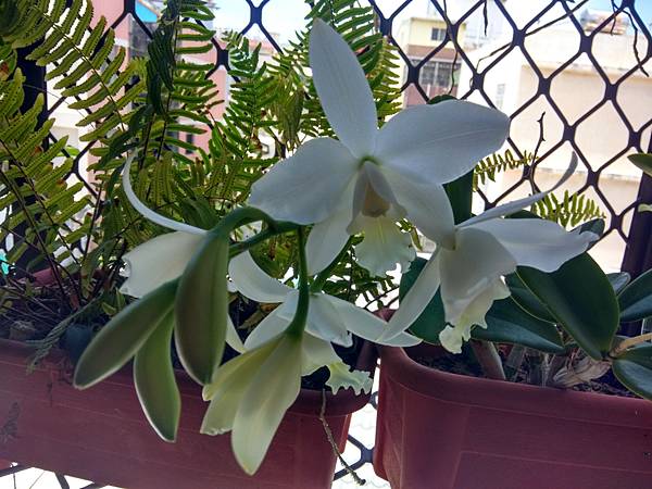 都端午時節,天氣變熱,還有株蘭花開了,這株也是我買裸根來種的,應不像蝴蝶蘭這麼怕陽光吧,還是在我另一側這陽台沒有直曬的問題,環境較適合啊!我家正前陽台沒有架黑網,所以夏天都只能種些水生植物,還有耐熱性的蘭花,像是石斛之類的,千代及萬代因為濕度不夠,所以放棄了這品種,昨天去文具店買毛筆及鬧鐘,店家送了很便直的筆筒,把仙人掌分株來種在裡頭,陽氣重的今日,只想喝冰水,看到植物綻放及綠葉的活力,讓人也感受到活力滿滿。這次開的蘭花,有香味的喔,風吹飄來氣息,讓人陶醉,買裸根來種的花,不管品種,反正開花時,好像開獎一樣,讓人驚喜。