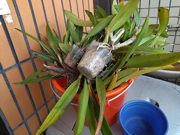 為了處理這些蘭花,水苔用完再去買,盆子用光了再去買,來去花市,反正這一兩年來也沒有去逛,也沒有買些新植株,結果這天買了一些小株來種,真的沒有想到可以在舊的花裡分出這麼多的新苗,當然舊株都得去附爛根及纏根,再把水苔弄鬆些,早知道就不必再買新株了,剛好有二位朋友來家裡,算他們好運,我真的沒有地方可以擺了,就送他們每人一盆,現在沒有在碼頭,不然碼頭有些朋友也是綠手指喔,可以拿去跟他們互為交換的。
