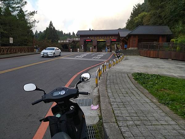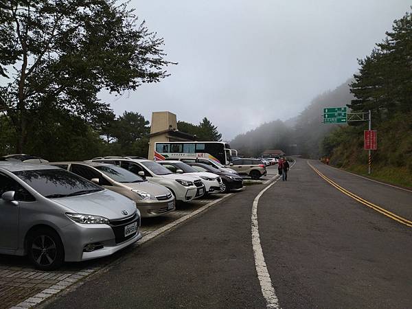 也許是高度夠了,加上沒有陽光直射,我一路上也沒有加衣服,而且我都穿涼鞋騎機車的,過了十字路就有點兒冷到受不了,當然是因為騎機車吹涼風太久,其實若用步行的方式來感受,這種溫度應還不至於受不了,可是我騎車就不舒服了,忍到阿里山大門口,停下來換上運動鞋,加上一件衣服,把頭套脖圍都穿上,也把穿上手套,因為我知道阿里山到塔塔加這段路是更高海拔,溫度會降得更快的,人要往好處想,這叫做樂觀,若盡是往壞處思考,你的人生絕對悲觀的,而我總是想好的,雖然冷,至少沒有下更,雖然距離長,至少機車沒有出什麼問題,長路漫漫,終有到達之時,看到塔塔加停車場那兒好多的人及車子,想先看要出發時把機車停在那兒,只是我發現我身上的抖,從心臟出發,傳遍了全身筋骨細胞,樂觀的我想的是,到山莊了。