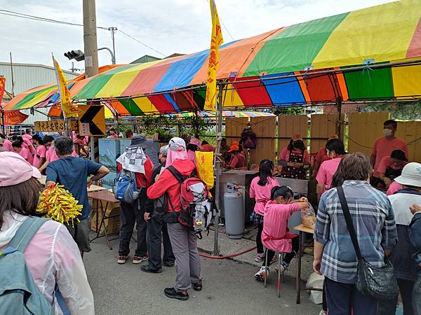 我已經吃很少了,特別挑回鑾的路程就是為了吃葷食的,去年去程都吃素食,其實也很好吃啦,麵包飲料肉粽及油飯之類的我沒有特別照下來,很感謝這些無償提供的人們及宮廟,有你們真好。