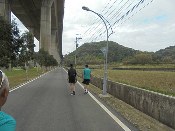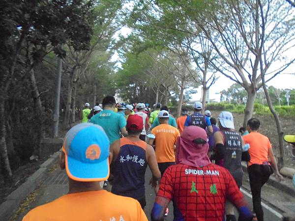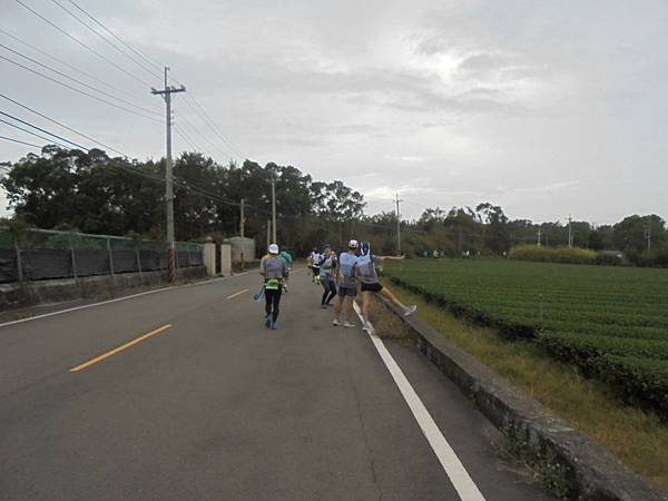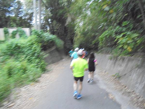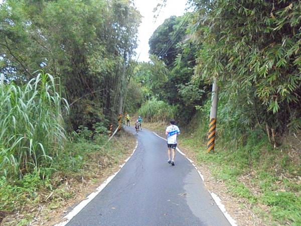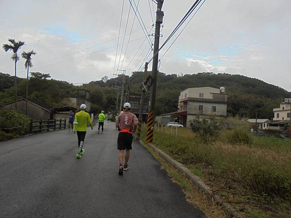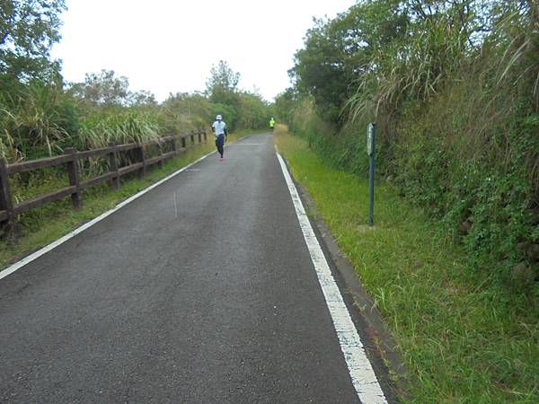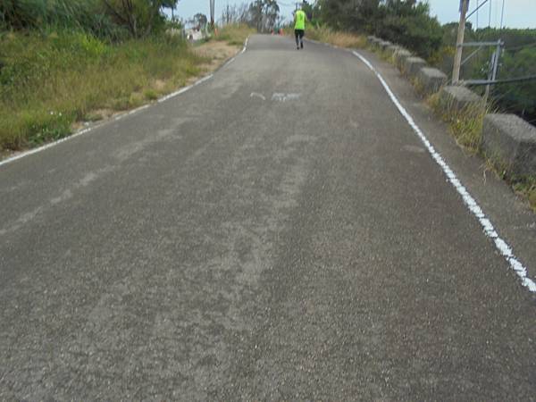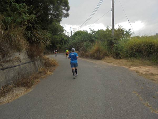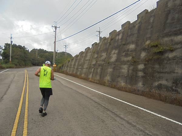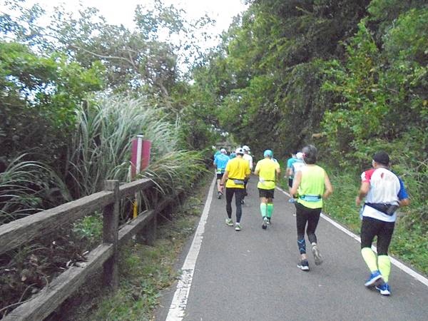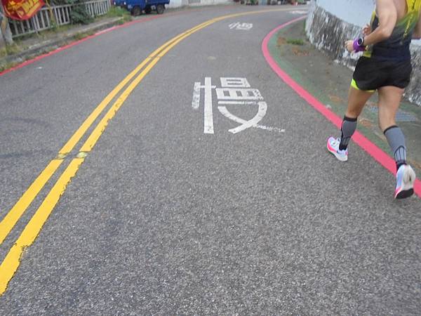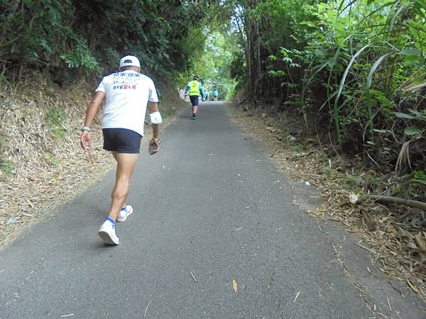 再從平地上到這丘陵高處,應也爬了有二百公尺以上吧,用走上來都難受,我想腳已不行了,心中想的是平安完賽,但平安完賽談何容易呢?上坡還好,下坡是我的體重加上重力,腳承受的可比起平路跑還可大的壓力,難怪連下坡跑都跑不起來,而我平常也沒有在練山路,快走是一定要的,每一步都難受,加油吧。