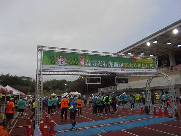 到會場就只剩半個小時就要起跑,我在車上早就準備好了,從台中到苗栗的車程還是花了些時間,先在車上把該換該準備的都安排,到會場直接去寄物後,在操場上稍微小跑熱身一下而已,不用說,每次上場之前都有些莫名壓力感及興奮,因為等一下要面對數個小時的折磨,你也沒有來過這兒,也不知道會有什麼樣的路線,不怕不懼現已成為我的本領,做就對了,有什麼好擔心,一開跑就是一步步地往前行。