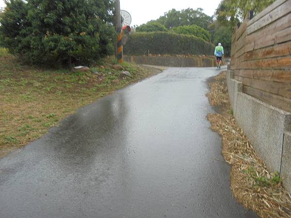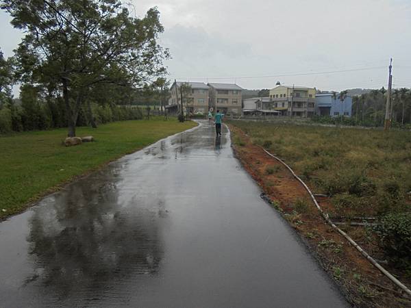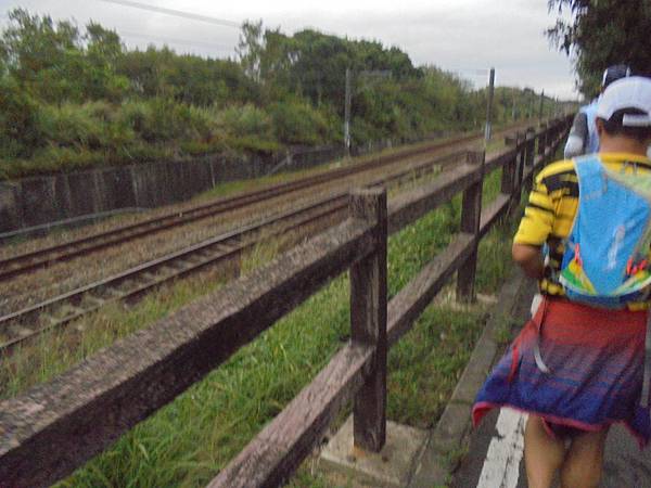 我只知道最後這五公里實在不好熬,是心境的問題,怎麼還沒有到呢?怎麼還沒完呢?心裡的感受,讓時間變慢了,讓路變長了,每一秒都像一小時似的,延著鐵道旁的小徑,一眼看過去似無盡頭,雨也來了,雨慢慢變大,雖不是大雷雨,但有風吹的小雨,還是讓身體溼了,心想都剩幾公里,得忍。