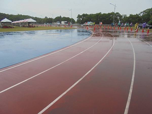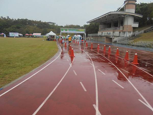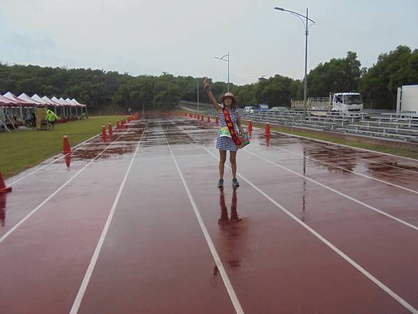 踩著滿是水的跑道進到聯大操場,當然又完成了一場,還能走得順,只是還得爬上階梯上去坐接駁車,再走不動也得走,每一步階級都像用盡力氣似的。