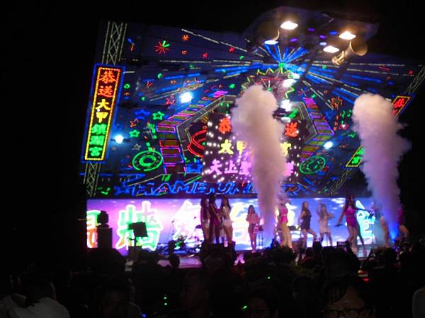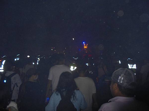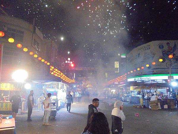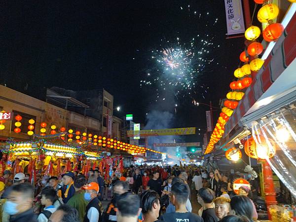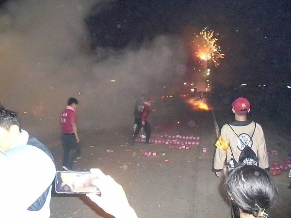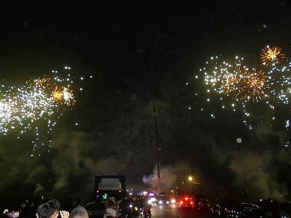 遇到有宮廟大手筆,放高空煙火,還有用很高的吊車喔,在這黑夜之中,在這曠野之下,沒有星月的夜,煙火把這平原變得燦爛,大家都停下來欣賞。